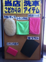当作業所ではこちらのこだわりのアイテムを使って洗車をします。
