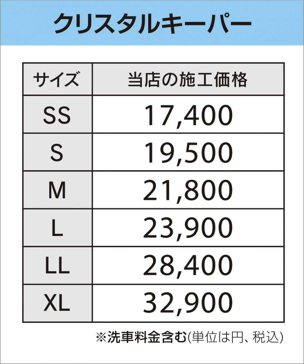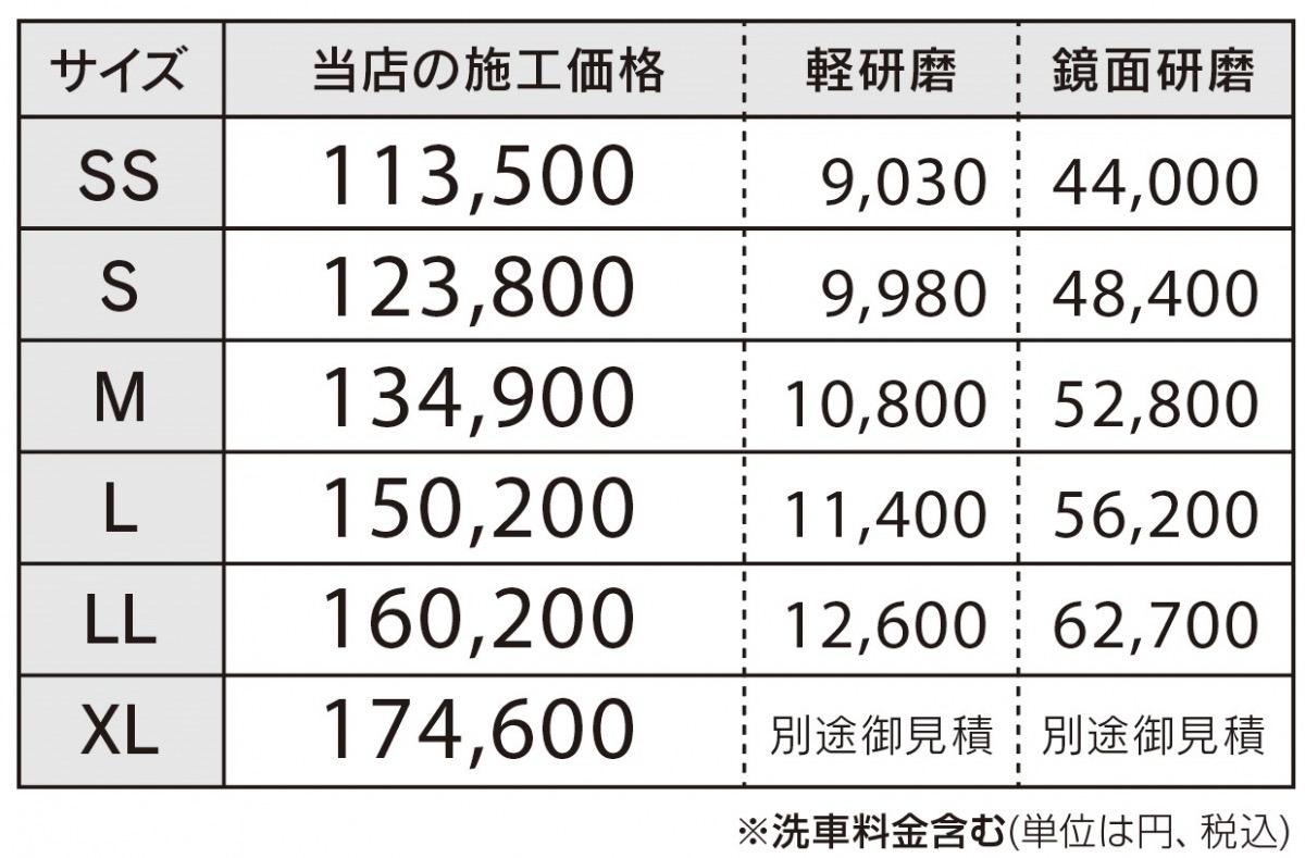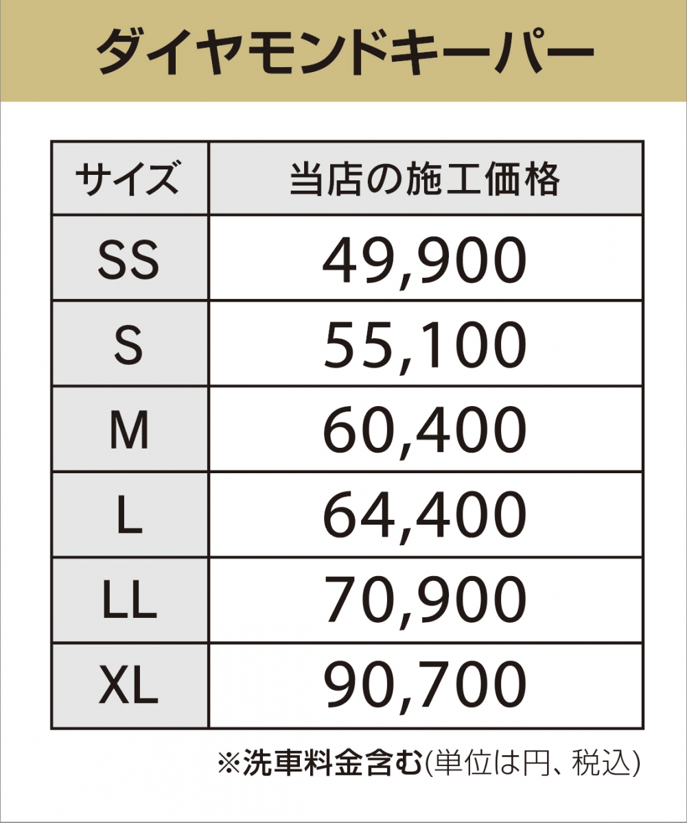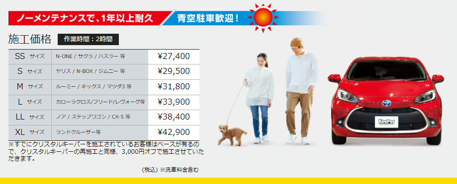 お車の大きさに応じて施工料金が変わります。