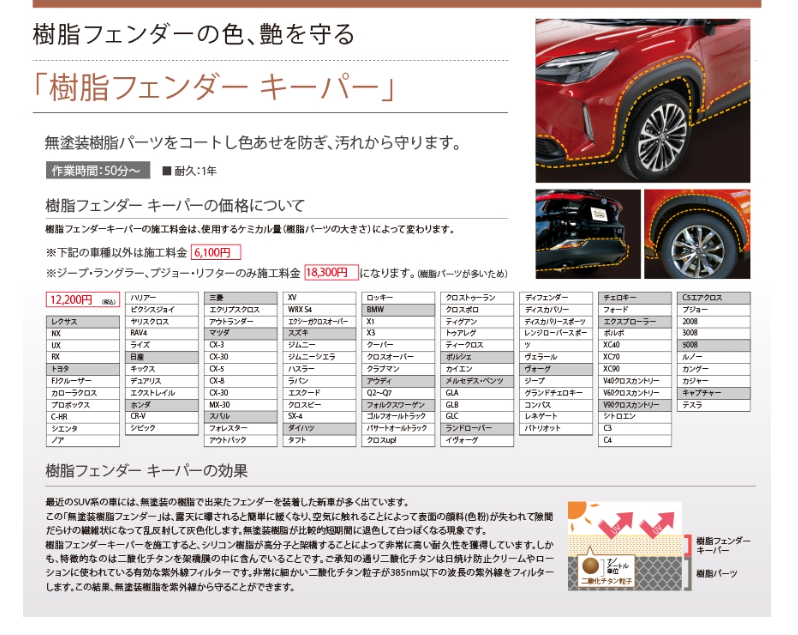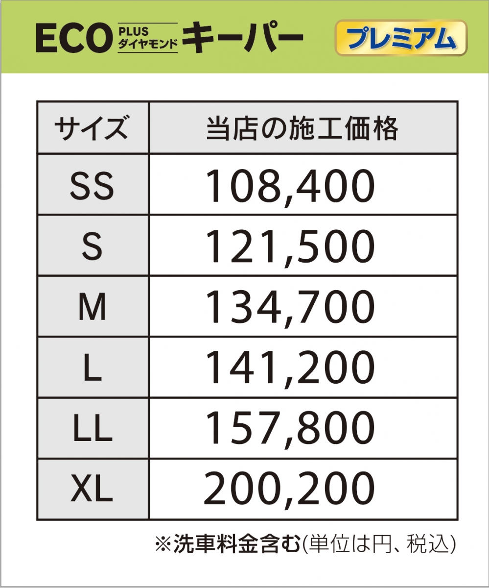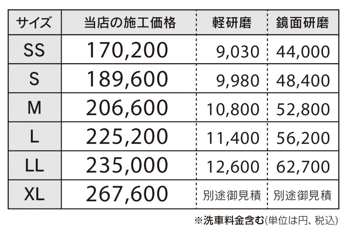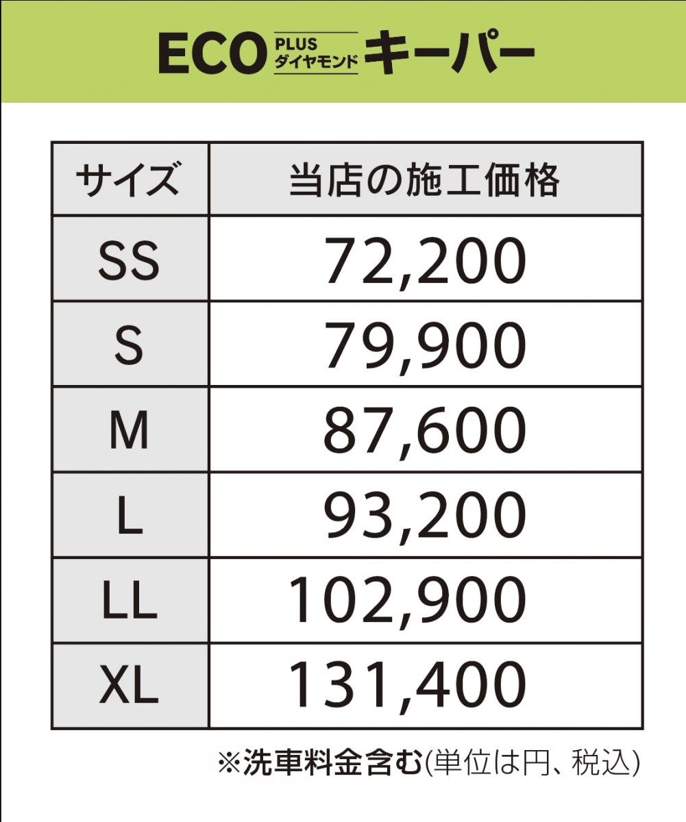お車の大きさに応じて施工料金が変わります。