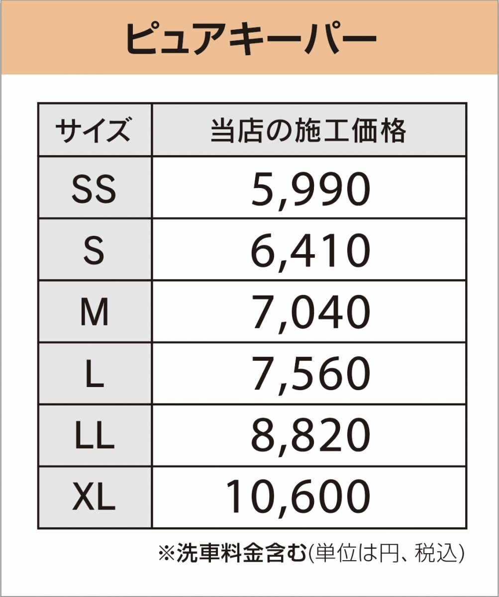 ピュアキーパーとは、「塗装のためになるコーティング」をコンセプトに、ワックスの時代の発想を180゜転換した新しい考え方【分子量200,000以上の高分子共重合体(コ・ポリマー)】から出来ています。この被膜が、ピュアキーパーの施工を繰り返すことで(キズを埋め)、タフで美しいボディを作り上げるのです。約3ヶ月ごとに新車に戻っていくような感動を味わえます。