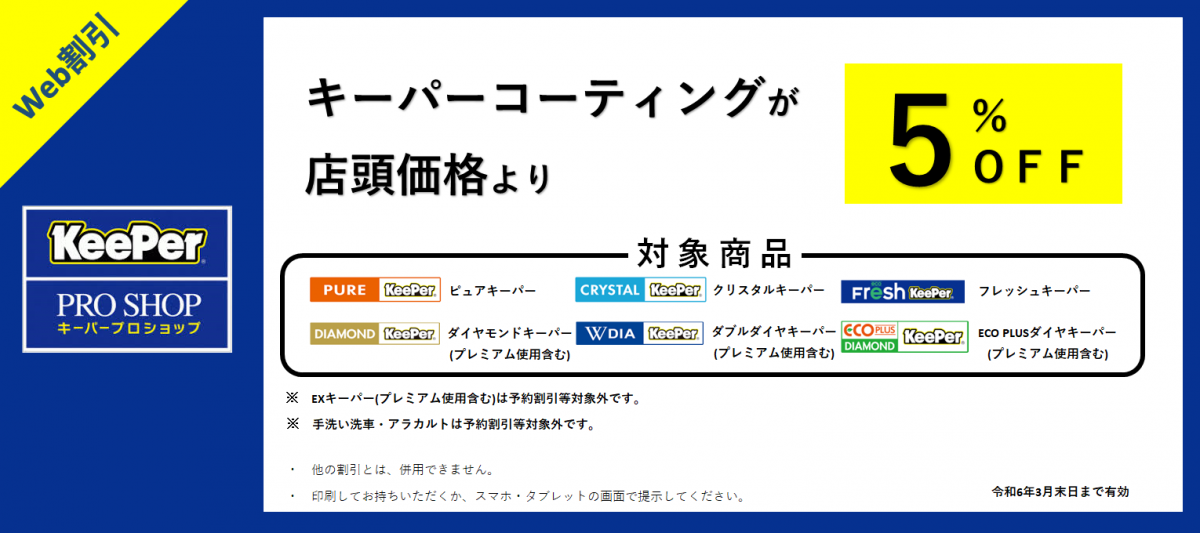 現在キーパープロショップ小禄店では、こちらのサイトをご覧頂いたお客様に、お得なキャンペーン情報をご紹介しております。