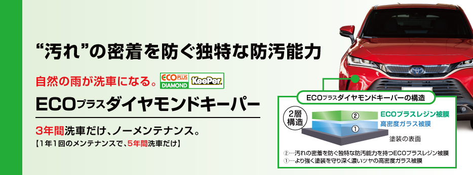 キーパーコーティングは、非常に細かい分子でコーティングを定着させていきます。 例えば、塗りたての塗装でも、通気性に優れておりますので塗装の乾燥過程に出てくるガスも、コーティングした後でもキレイに抜けていきます。 多くのガラスコーティングに入っているキレシンなどの『有機溶剤』を使わないため塗装に優しく、侵食してしまうことはありませんのでご安心してお任せ下さい。