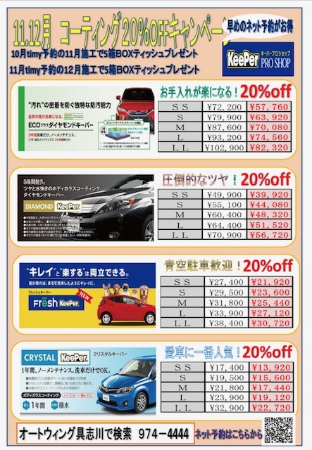今年は11月 12月コーティングキャンペーン開催決定!
