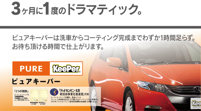 ピュアキーパーは愛車が絶対汚れない「魔法のバリア」ではありません。汚れが着いてもコーティング被膜内に浸透せず、簡単に落ちるのが特性です。