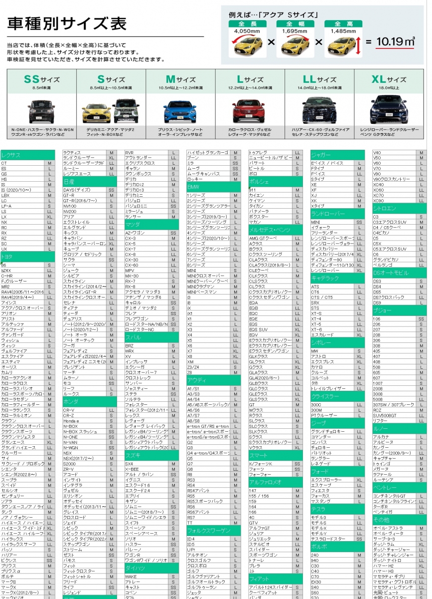 私の車は何サイズ?