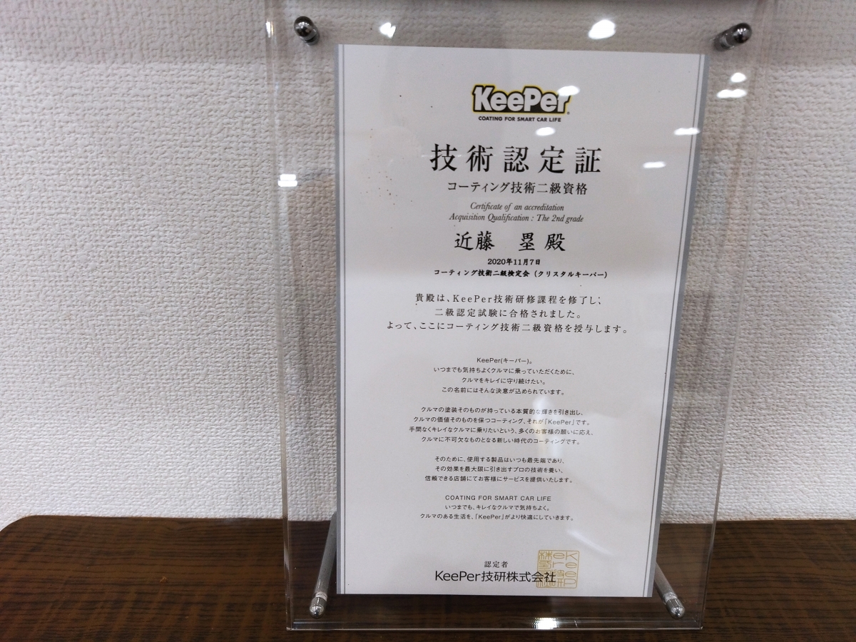 ・当店ではコーティング施工後全てのコーティングに施工証明書を発行しております。