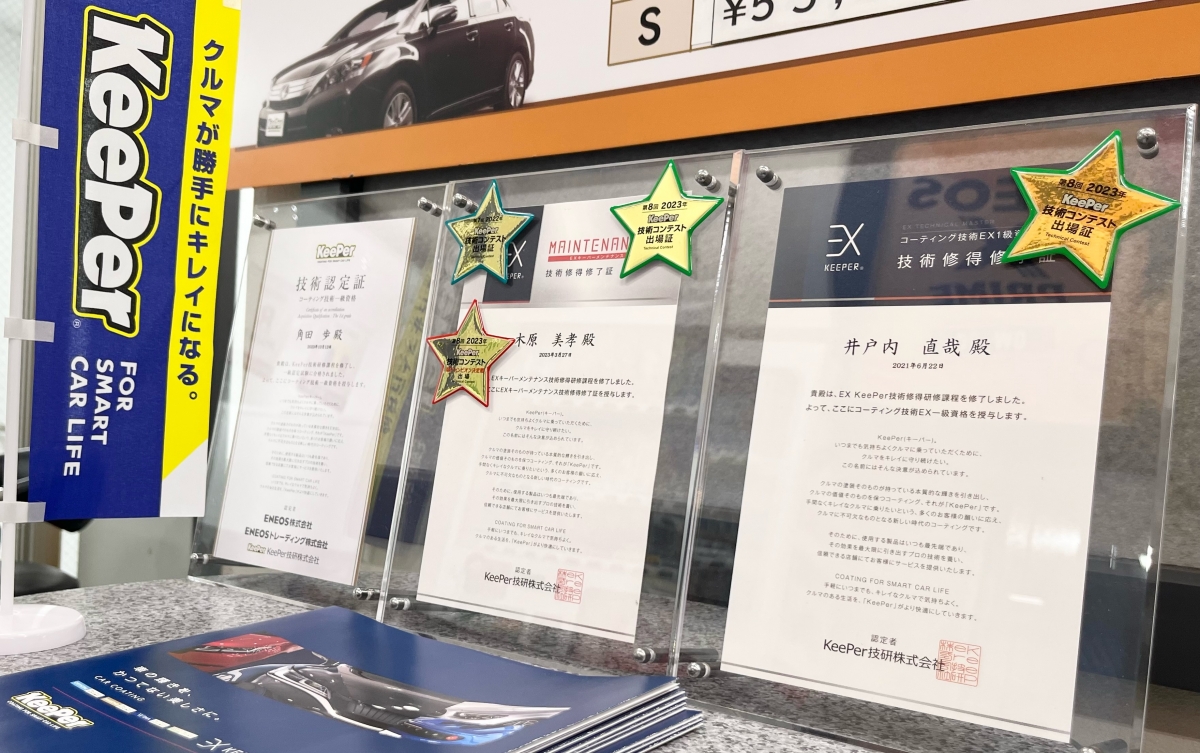当店では最上級プロ資格(1級EX)を持った3名のスタッフでコーティング・洗車の徹底した管理を行っております。