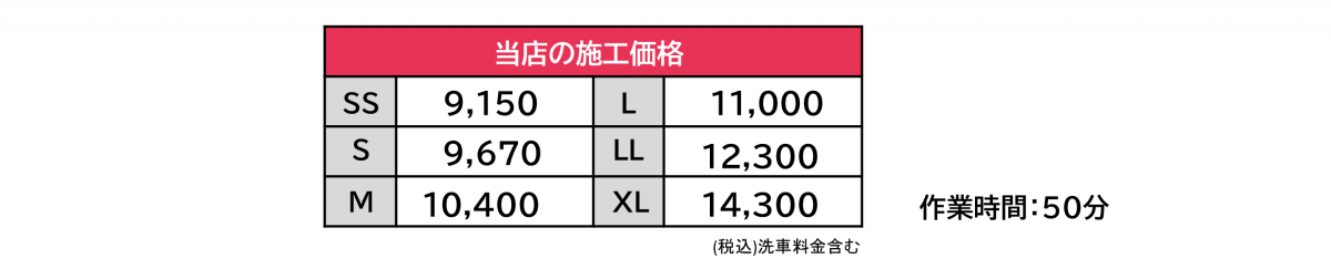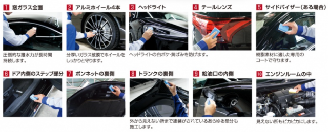 他にも、モール・窓ガラス全面・ホイル4本・アンダーコート・ヘッドライト・エンジンルーム