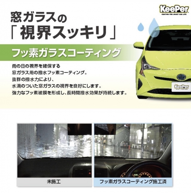 雨の日の視界を確保する窓ガラス用の 撥水フッ素コーティング。