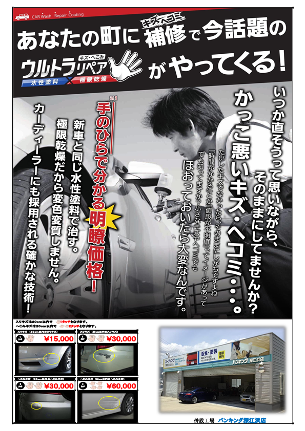 ホームページを見て頂いた お客様限定! 鈑金塗装とコーティングの セットで10%割引!!