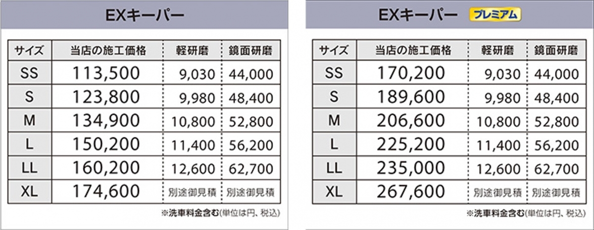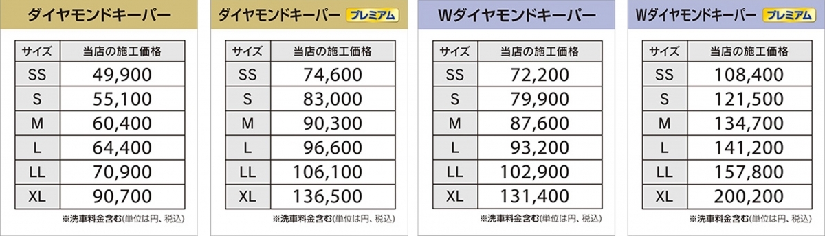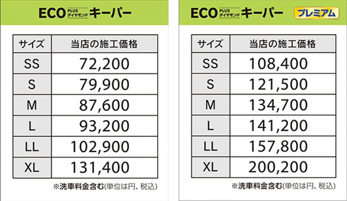 価格表をクリック(タップ)するとお車のサイズをお調べできます。