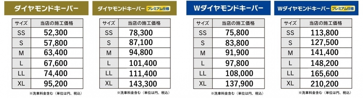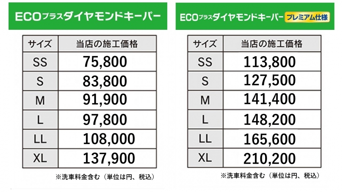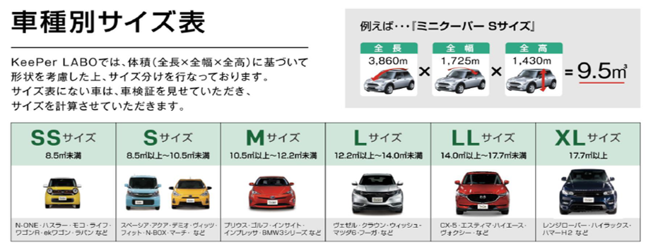 価格表をクリック(タップ)するとお車のサイズをお調べできます。