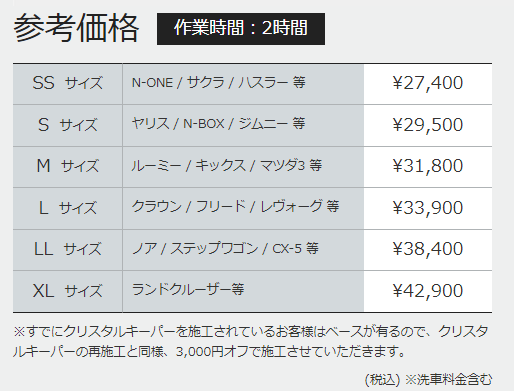 コーティング前に油膜取りをしコーティングをかけますので、施工後水弾きがよく、雨天時の運転が楽しくなります。