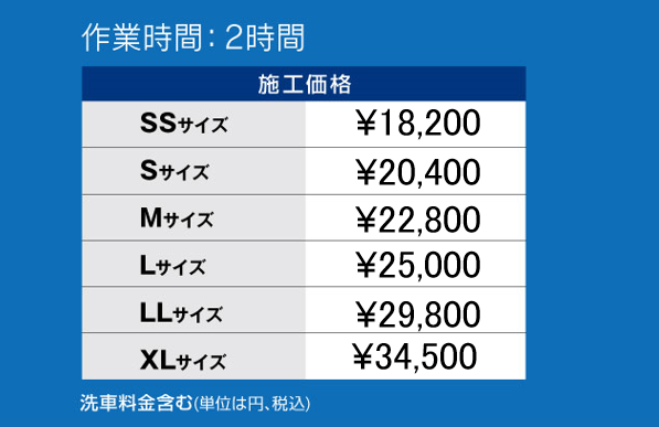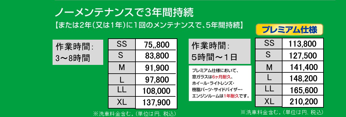 施工時間 : 丸一日お車をお預け頂きます。(プレミアムは、数日間)