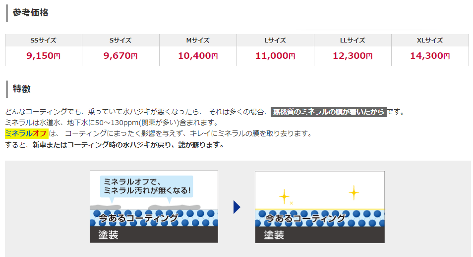 特 長:新車をもはるかに凌ぐ艶。プラス雨が降ったら、まるで洗車をしたようにきれいになります。