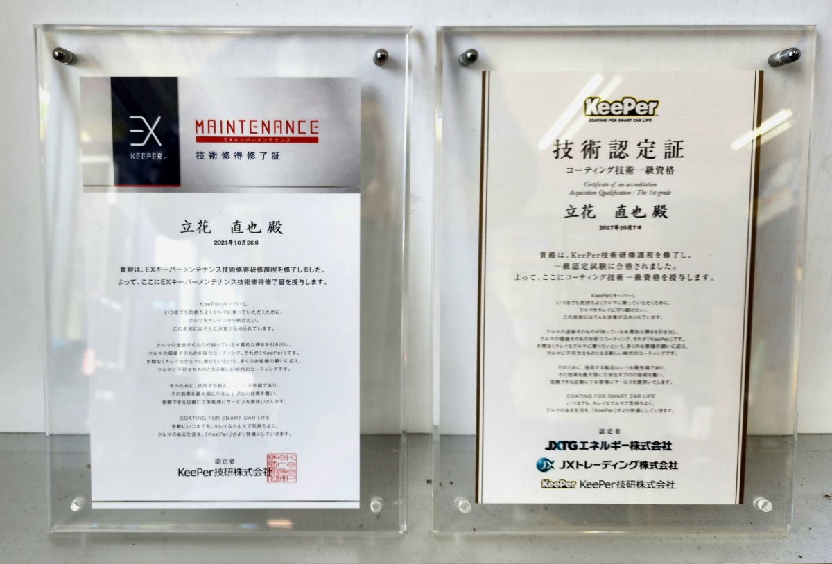当店ではコーティング技術1級資格者が4名おりますので、お車の美容のことなら何なりとご相談ください。