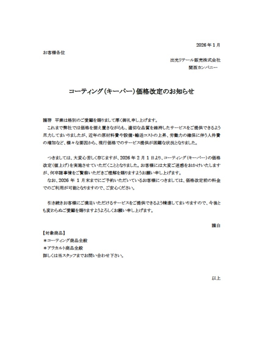 お世話になっております、KeePerプロショップ豊中緑丘店です✨1月も皆様のおかげで乗り切ることができました!今月もご利用、誠にありがとうございました☺️2月からはコーティング価格の値上げがございます...