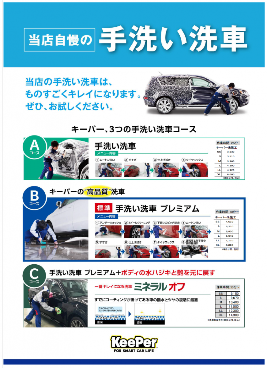 洗車だけでなく、タイヤやオイル等の作業の「予約受付」も開始致しました。