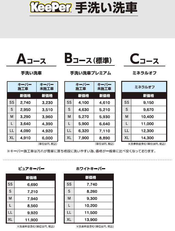 水洗い洗車洗車 400円/ シャンプー洗車 500円