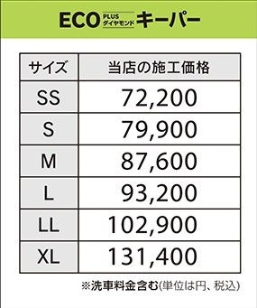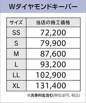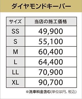 キーパープロショップでは、お車の大きさに応じて施工料金が変わります。