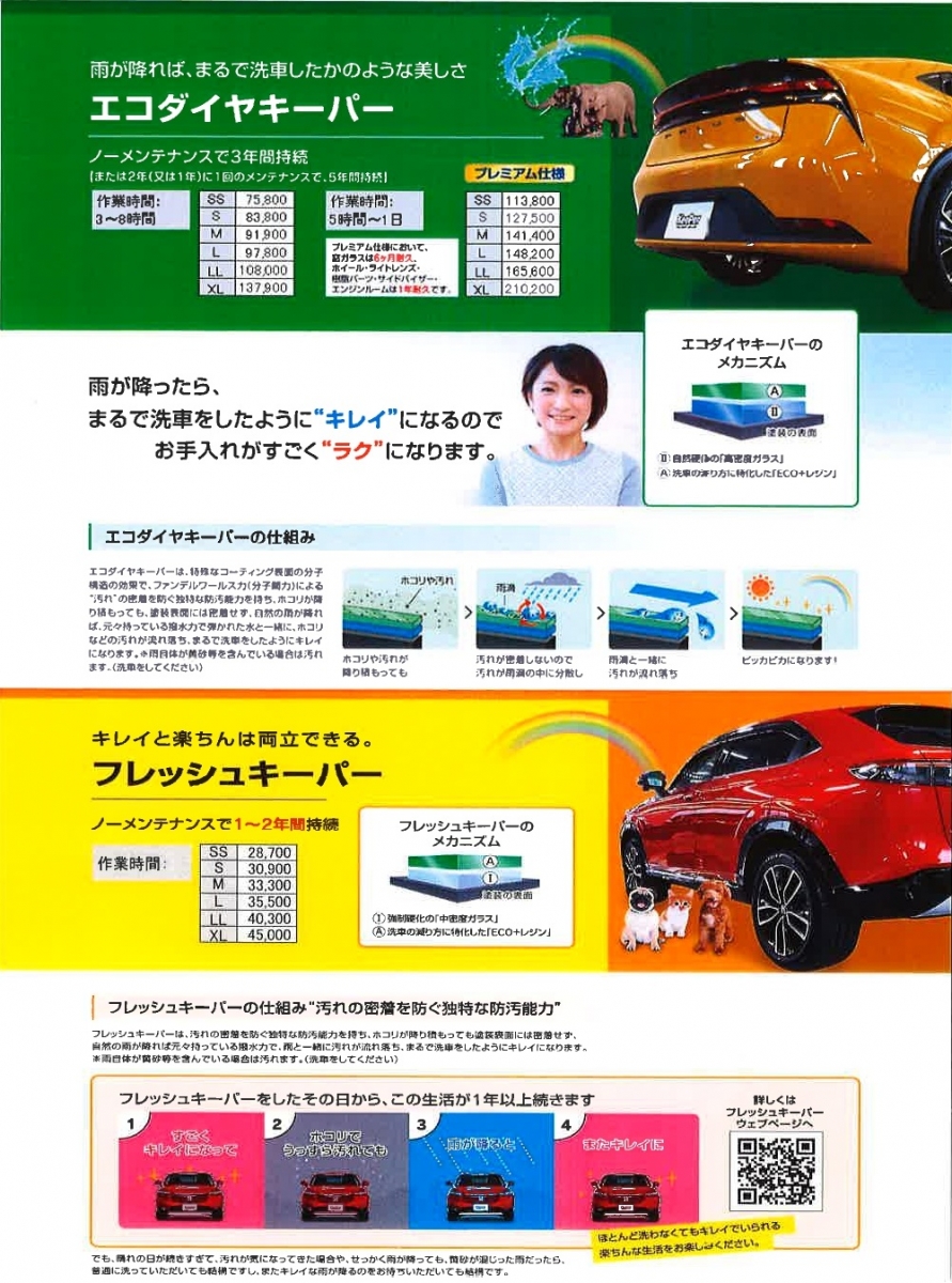 洗車の負担が軽くなり、美しい艶で輝く愛車を、是非お楽しみください。