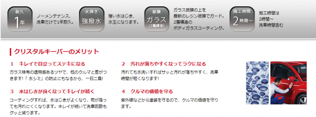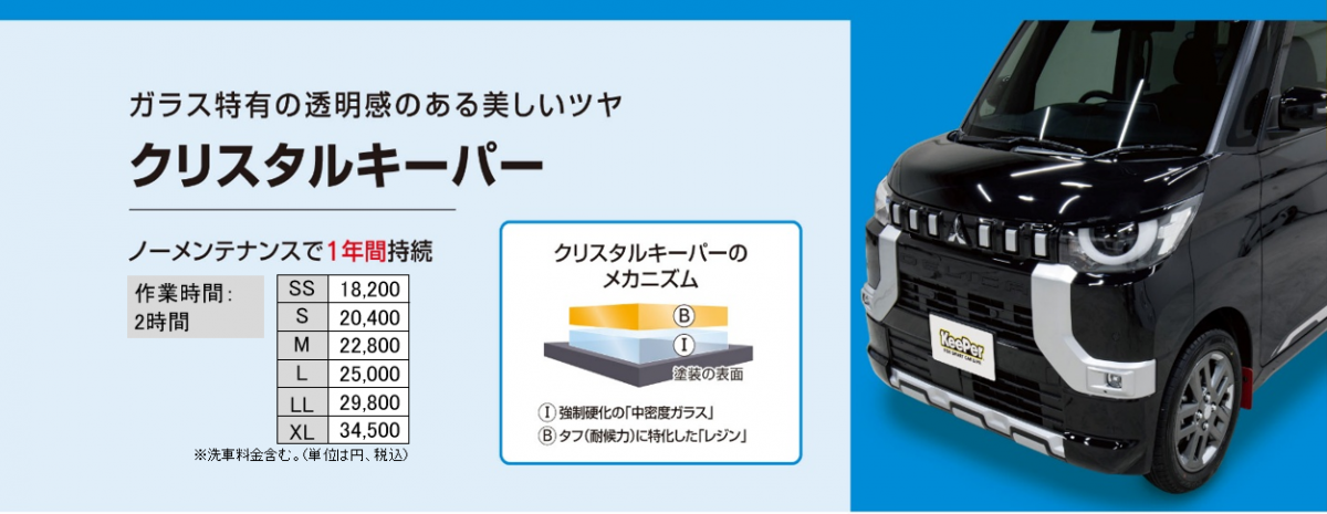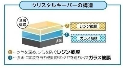 ガラス特有の透明感のあるツヤ。クリスタルキーパー 1年耐久 ノーメンテナンス。