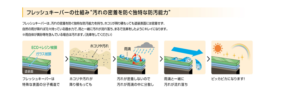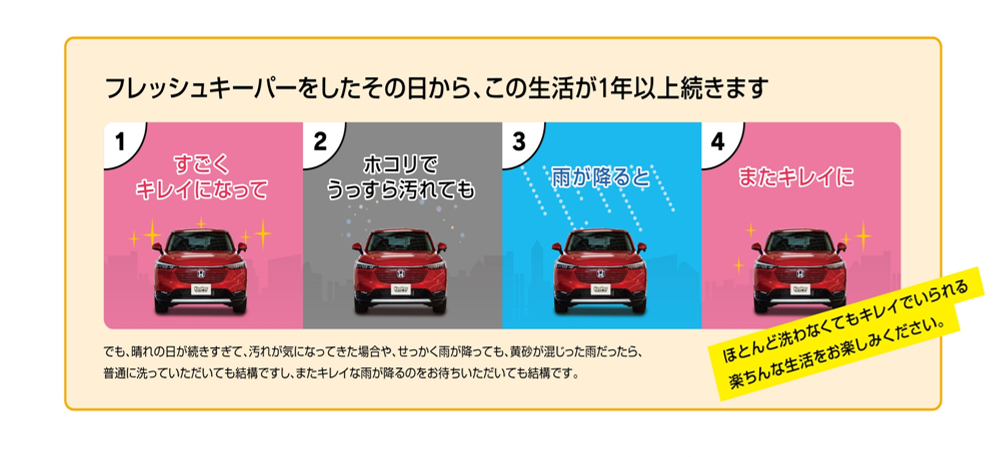新発想 雨で車がキレイに。随一の汚れにくさを誇るフレッシュキーパー。 ノーメンテナンス1年耐久。