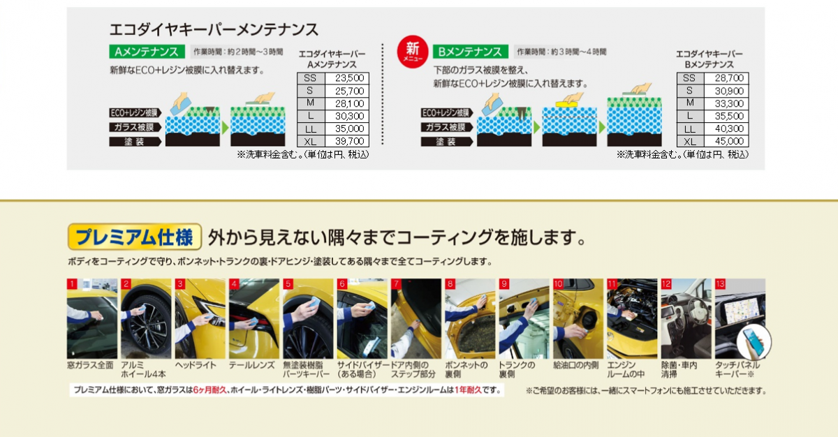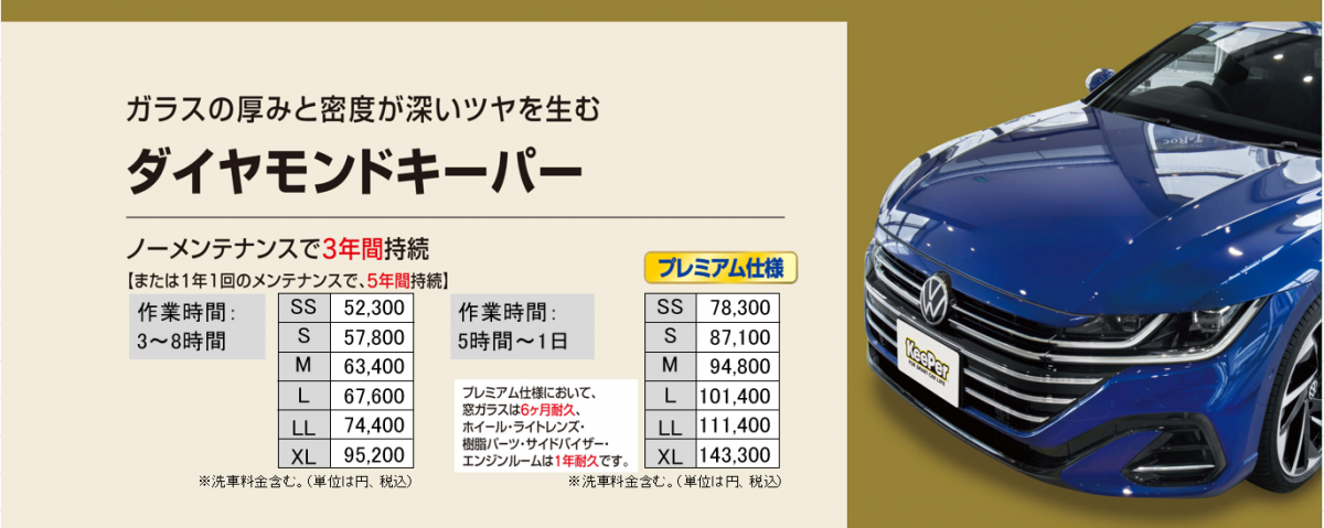 圧倒的なツヤと存在感。ダイヤモンドキーパー 3年耐久ノーメンテナンス または 5年耐久1年1回メンテナンス