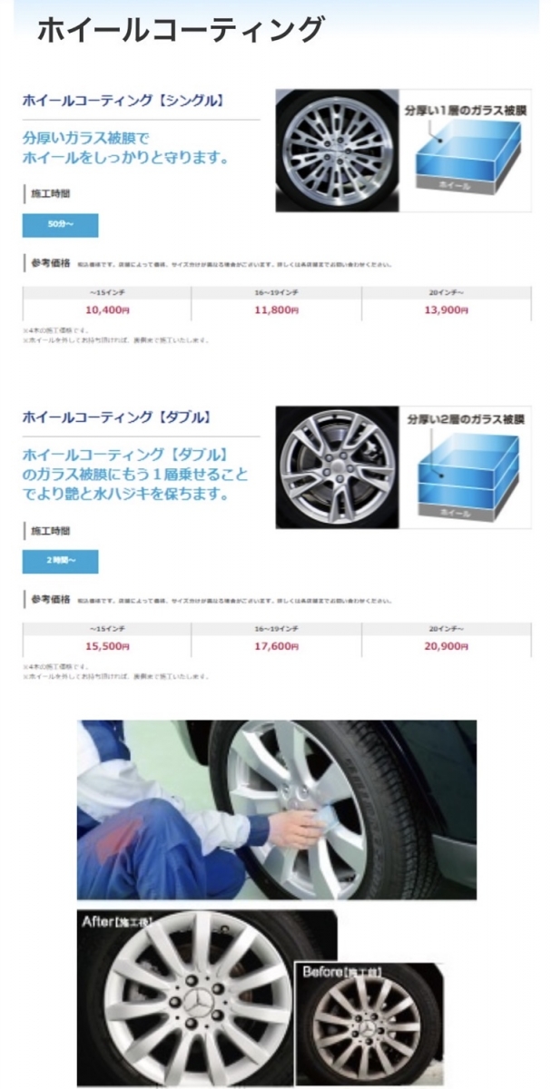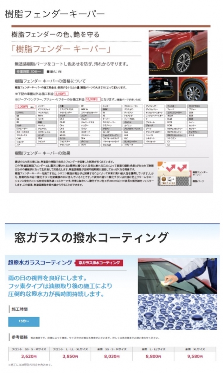 当店では、お車のサイズに応じて施工料金が変わります。
