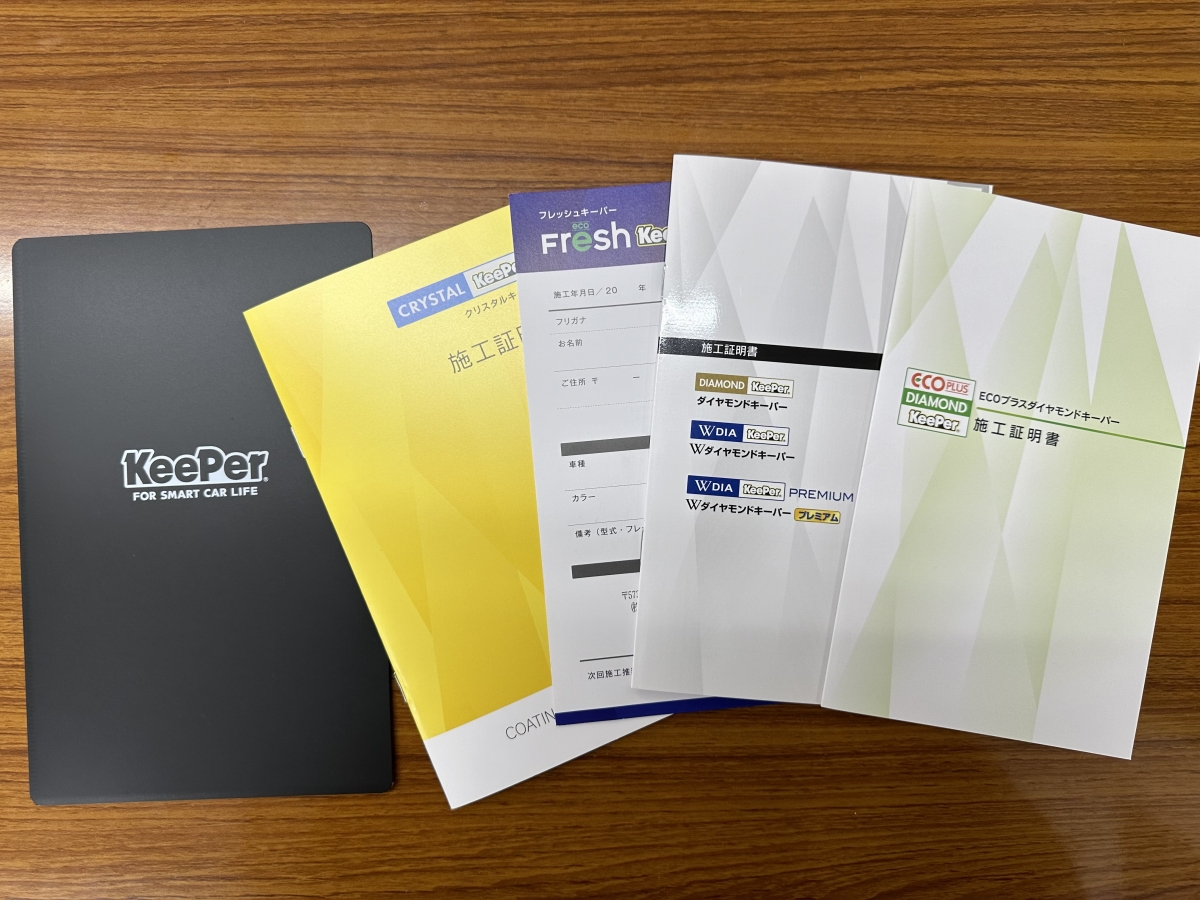 当店では全てのコーティングに施工証明書を発行しております。万が一お車の板金修理等される場合のコーティングの部分施工も承っております。また各種自動車保険にも対応しておりますので大切に保管しておいて下さい。ご予約・お問い合わせはお気軽にご連絡下さい。