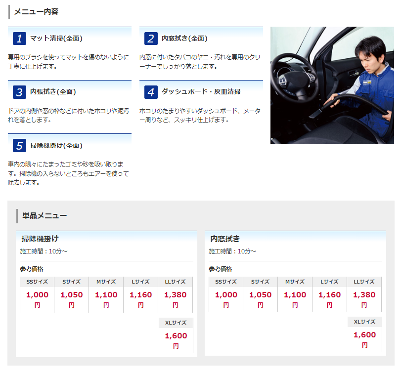 車内清掃メニューの
