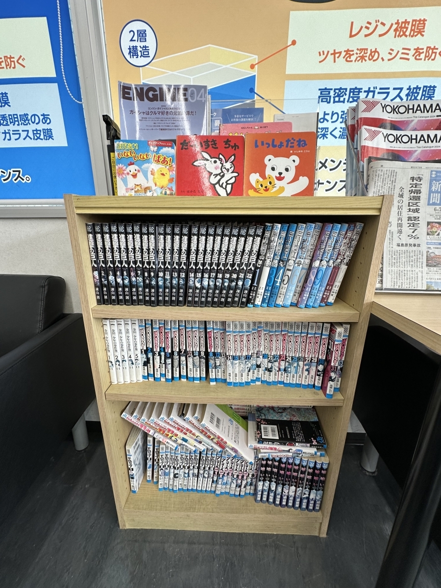 お待ち頂く間、各種マンガ、雑誌、お子様向けの本がございます。