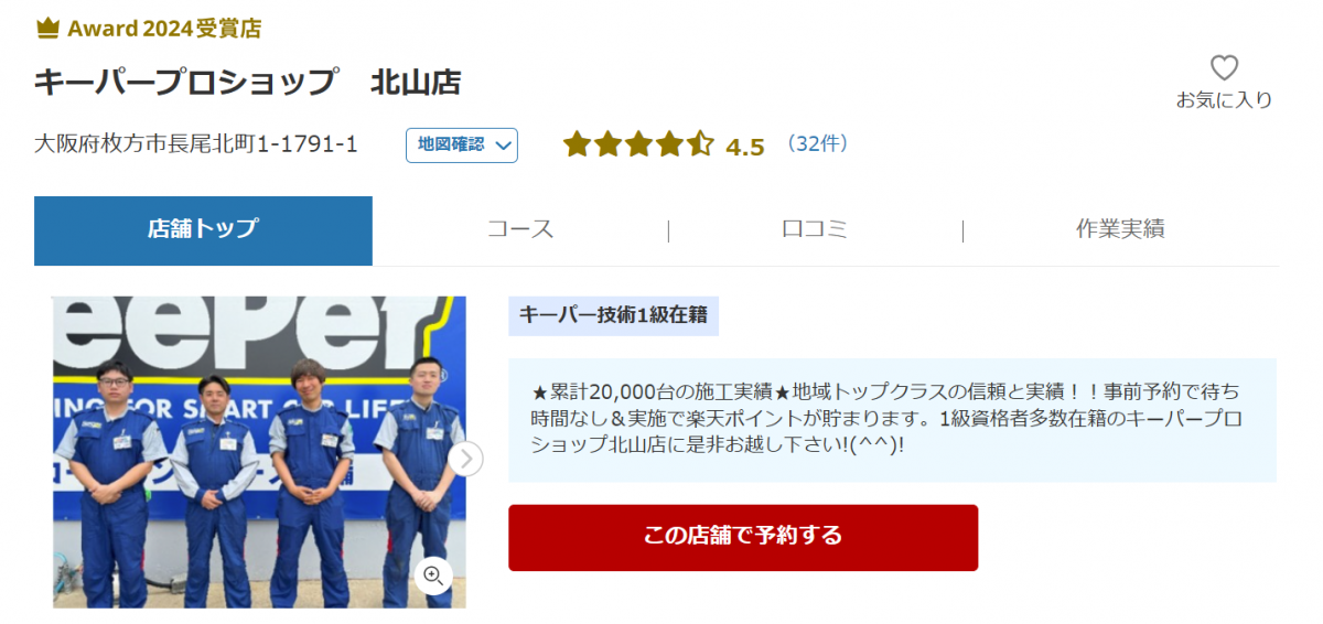 - キーパープロショップ北山店は、大阪府枚方市長尾北町にある、『カーコーティングと洗車の専門店』 です。