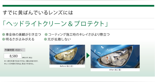 「ヘッドライトクリーン&プロテクト」なら、ヘッドライトを復活できます。