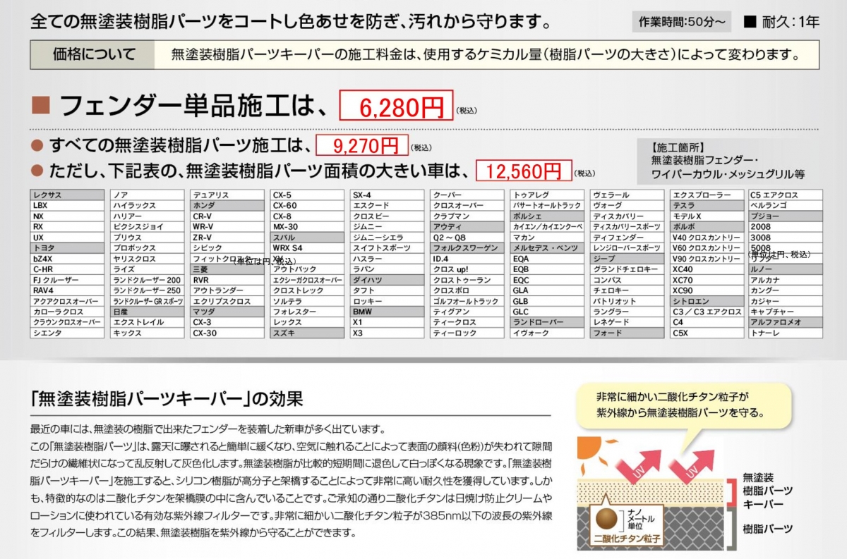 樹脂パーツ部分が多い車両は変わりますが、