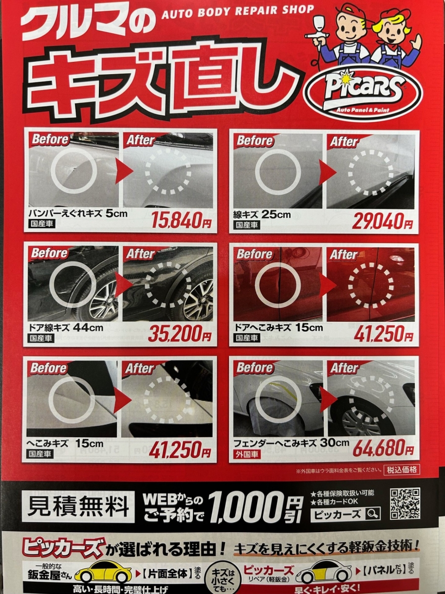 小さなキズやヘコミでもサビが広がってしまったり、お車の価値が下がってしまったり・・・