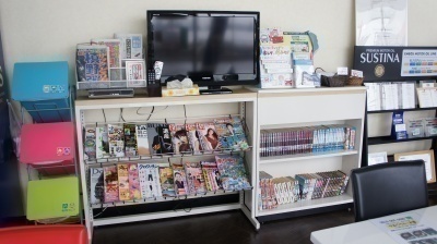 待ち時間のストレスを感じさせないよう 各種、雑誌・コミックなど取り揃えています。