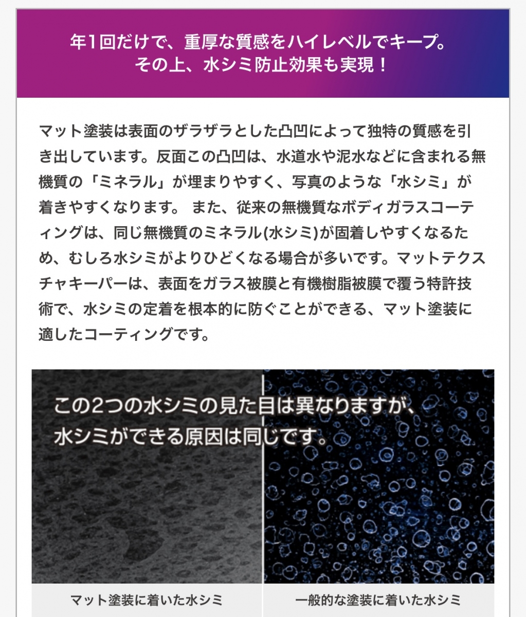 さらに、2層目にダイヤモンドキーパーなどと同じレジン被膜を重ねて形成して、うろこ状に着く水シミを防ぎます。
