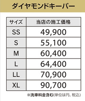 ガラス層がダイヤモンドキーパーの2倍あります。ダイヤモンドキーパーのガラスの膜1枚の厚みは、約1ミクロン(普通のガラスコーティング膜の50倍程度)を越し、塗装面のツヤを損ねている微細傷や凹凸を埋めて被膜表面を厳密に平らにして”異次元のツヤ”を作り出します。また、このガラス被膜は本質的に無機質であり、酸性雨や紫外線に対しての防護能力を持っています。ダイヤモンドキーパーは、【ガラス、レジン】の2層構造!対して、Wダイヤモンドキーパーは、ガラス被膜だけでも2層、きちんと乾燥させながら施工します。【ガラス→ガラス→レジン】の3層構造です。厚いガラスの層がたっぷり2倍あることで、ツヤや、防汚能力も強化された被膜を形成します。