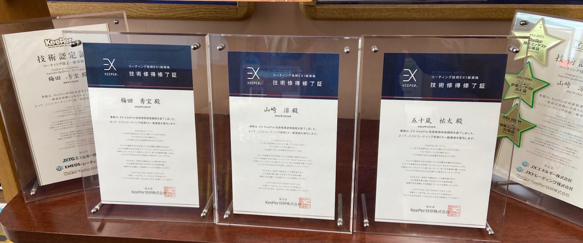 当店は、全スタッフがコーティング検定1級&EX資格有りです。