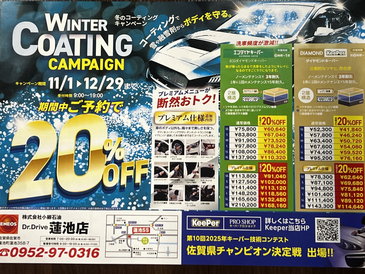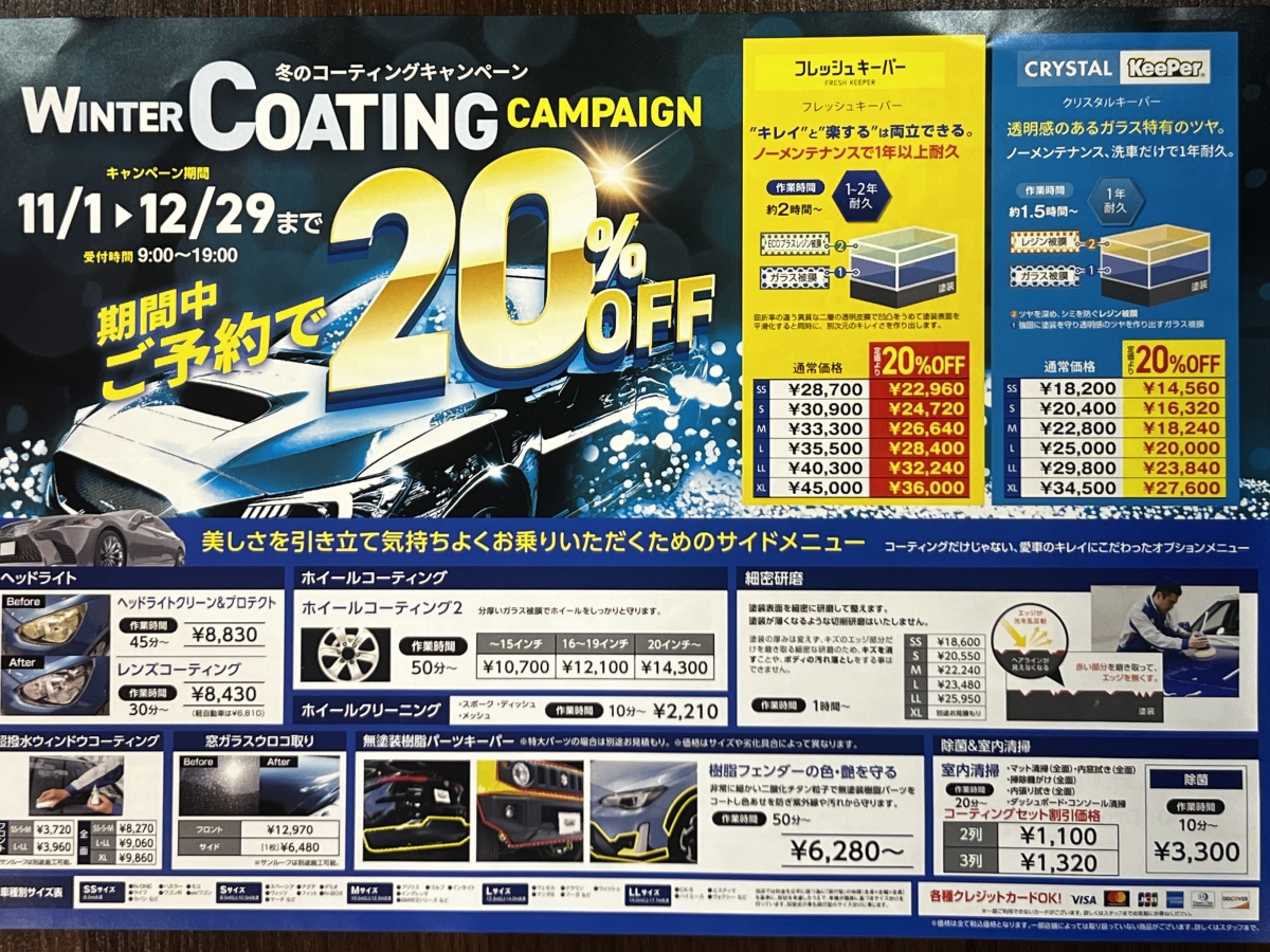 当店最大のイベント、今年もやります。冬のコーティングキャンペーン!!