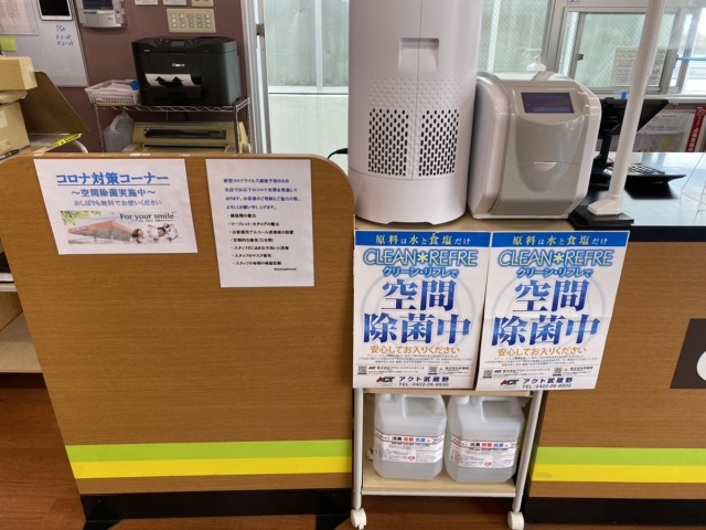 ※コロナ対策として、喜多村石油全店で待合室に空間除菌を実施しております。