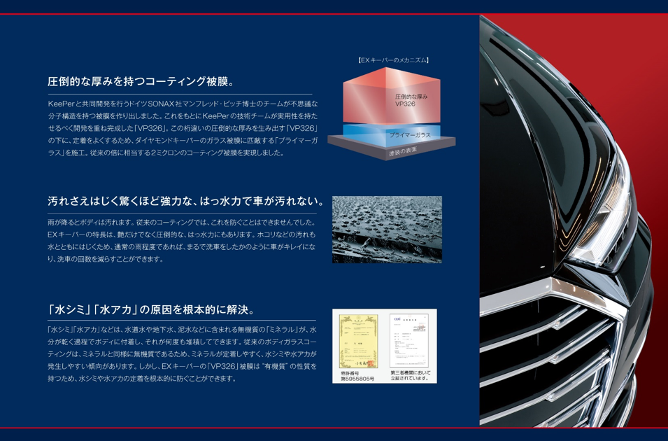 実際担当の私はEXキーパーを施工していますが、目立った汚れは付きにくく洗車回数はダイヤモンドキーパーを施工していたときの半分以下です。