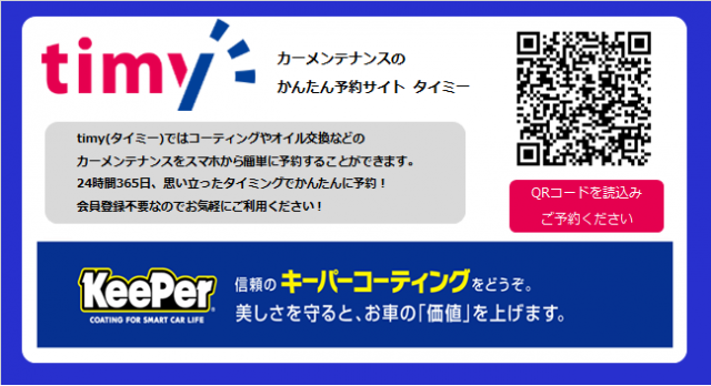 ※キーパーコーティング施工証明書をお持ち頂きますと特別価格になります