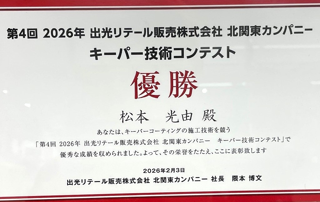 当店のスタッフは、キーパー技術コンテストに定期的に参加しており、日々技術力に磨きを掛けております。その中で、予選会通過のスタッフや社内コンテスト優勝など、認められた技術者が多数います。