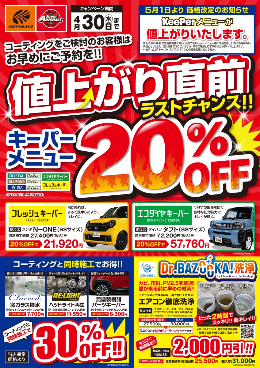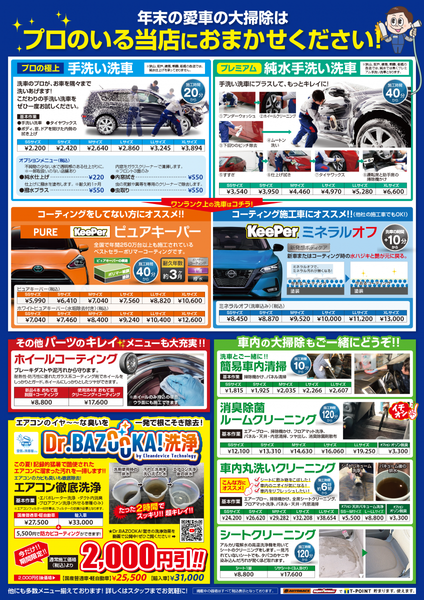 - 洗車・コーティング営業時間