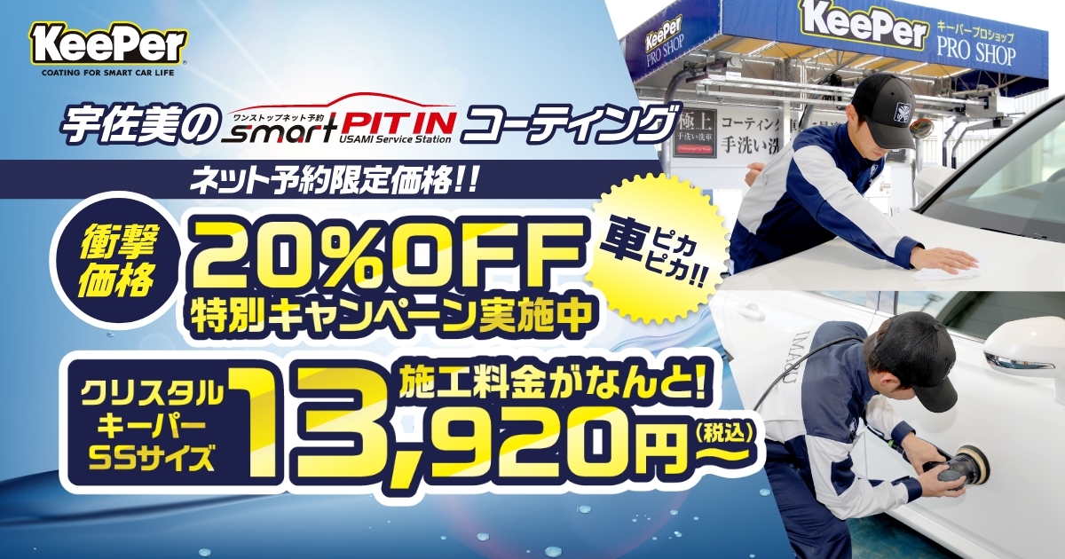 スマートピットで予約してもらうと今ならコーティング20%OFF中!!!