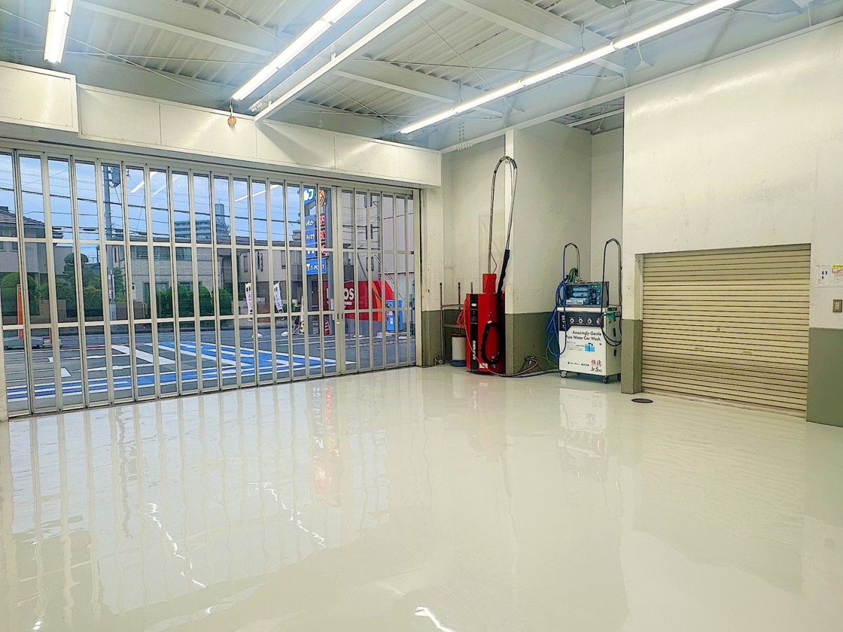 2024年6月には全面床工事をし、2台分のスペースを確保しました!(床もきれいにピッカピカ✨)