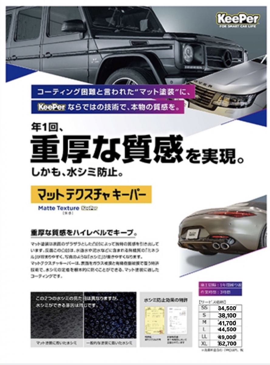 キーパーコーティング以外で施工の場合のメンテナンスは店舗へご相談下さい!