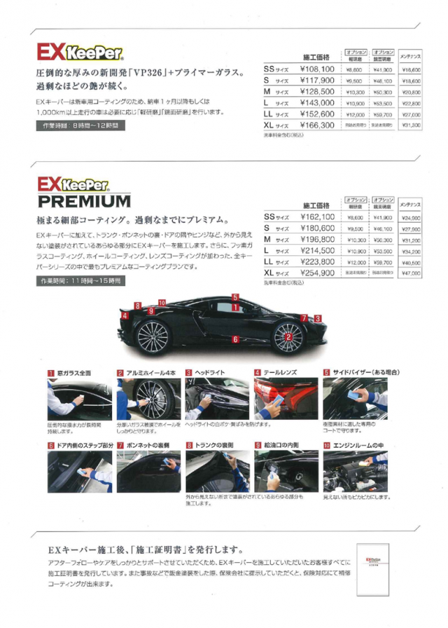※車種の大きさによって、洗車・コーティングの金額が異なります。